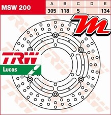 Disque de frein Avant TRW Lucas MSW 200 BMW R 1100 R, ABS (259R) 1994