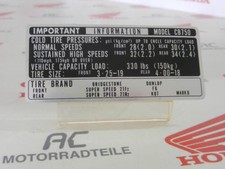 Honda CB 750 Quatre K0 K1 K2 - K6 Étiquette Garde-Boue Neuf Caution Marquer Pneu